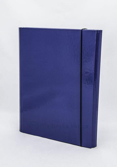 Lakirana kartonska mapa s tremi zavihki in elastiko. Gube na hrbtišču omogočajo vlaganje listov do debeline 50 mm.